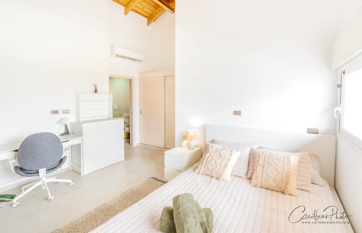 Druga Sypialnia: Na piętrze znajdziesz drugą sypialnię z łóżkiem typu queen-size, miejscem do pracy oraz prywatną łazienką. Dodatkowy balkon na górze oferuje przepiękne widoki, idealne na poranną kawę lub wieczorny relaks.